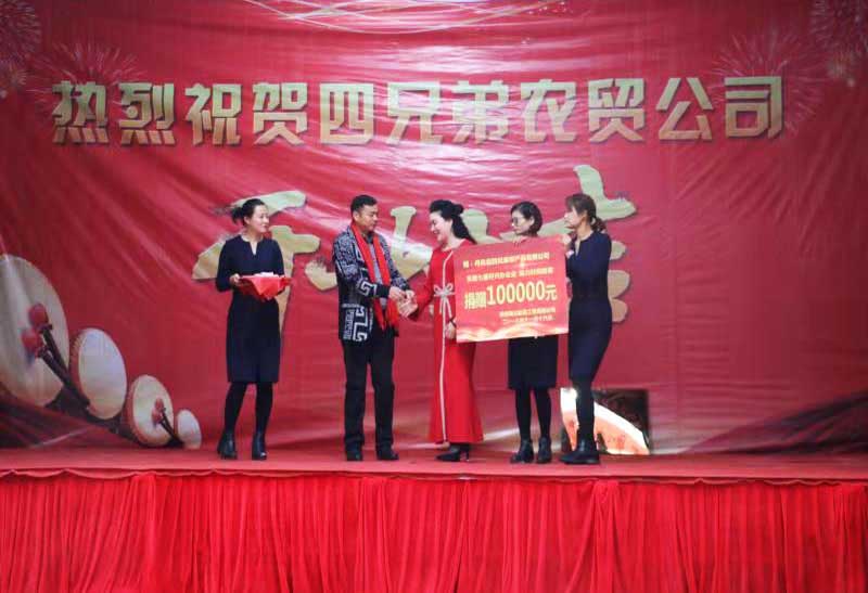 在熱烈的掌聲中,陜西秦川建筑工程有限公司總經(jīng)理劉愛云、四兄弟農(nóng)產(chǎn)品有限公司董事長(zhǎng)劉三軍,進(jìn)行了捐贈(zèng)資金交接儀式,陜西秦川建筑工程有限公司向四兄弟農(nóng)產(chǎn)品有限公司捐款10萬元。